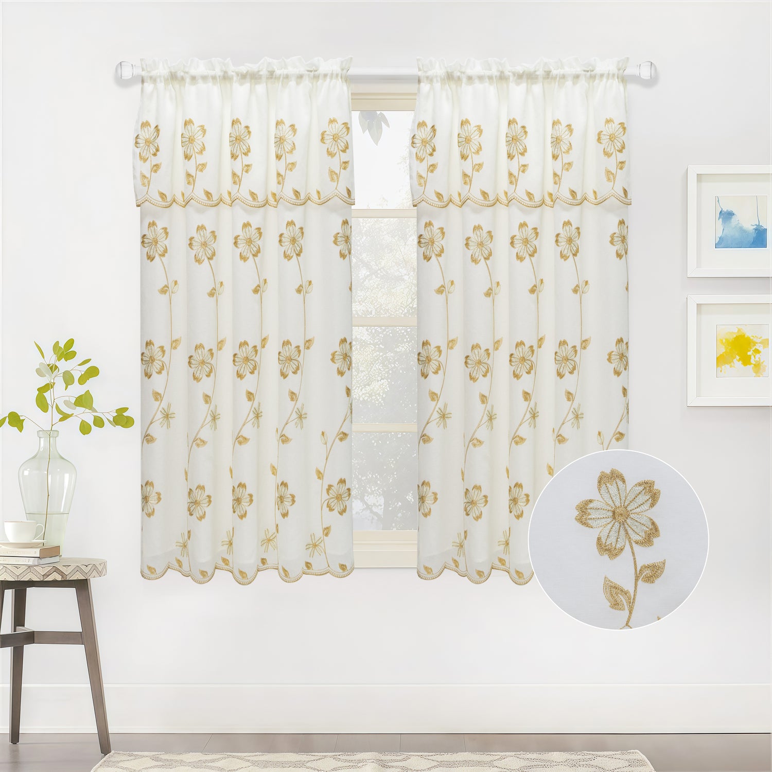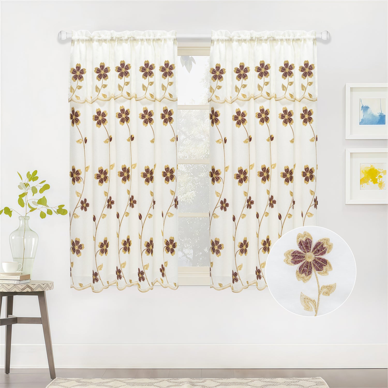 Juniper Embroidered Curtain Panel with Backing – Floral Window Curtain