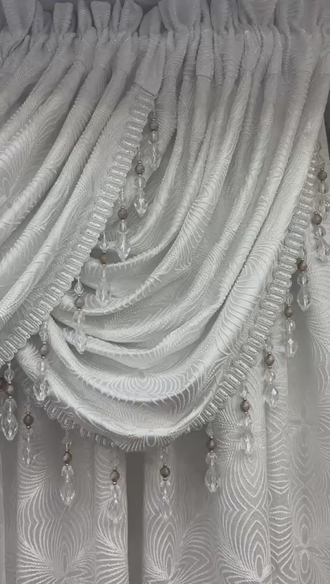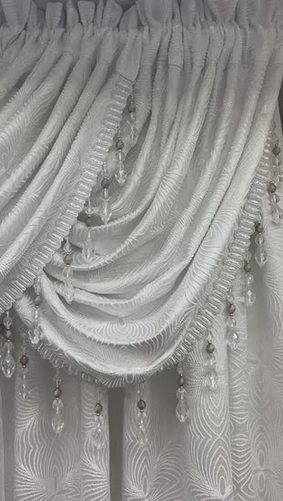 Luxury draped valances for an elegant layered look - (https://www.stylishcurtainsny.com/products/margo-jacquard-waterfall-valance?variant=46992859201792)
