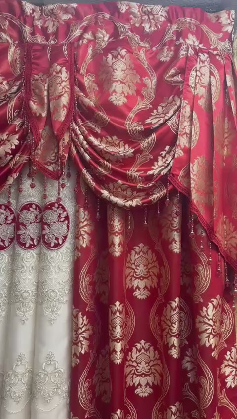 Mina Red Luxury Curtain Set for 78” Window – With Monalisa Panels & Backing