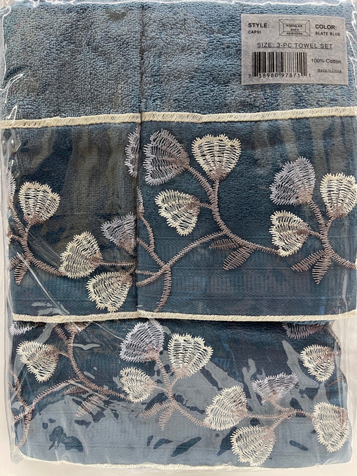 Popular Bath Embroidered 3 Piece Bath Towel Set